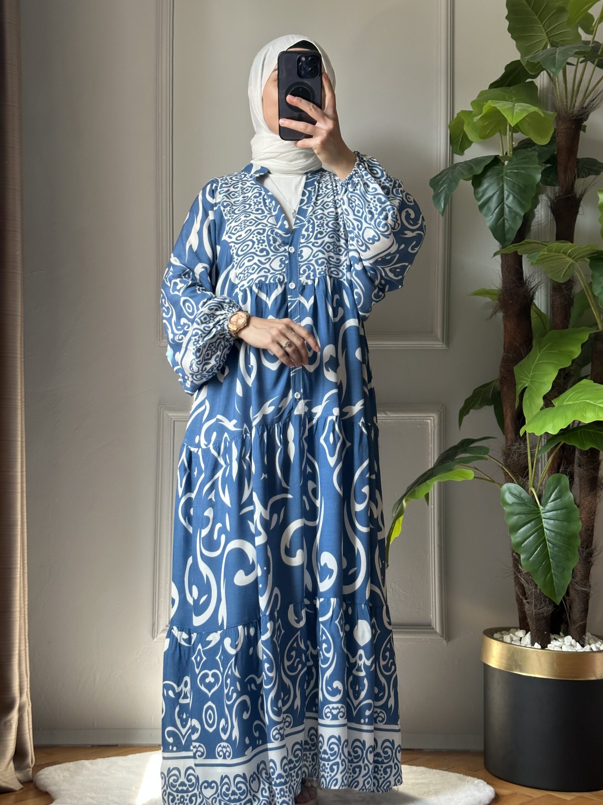 Rahat kesimi ve şık duruşuyla gardırobunuzun favorisi olmaya aday Alya Elbise, kaliteli viskon kumaşı sayesinde terletmez ve gün boyu konfor sağlar. 135 cm uzunluğu ve göz alıcı deseni ile hem günlük kullanıma hem de özel günlere uyumlu, modern bir şıklık sunar.