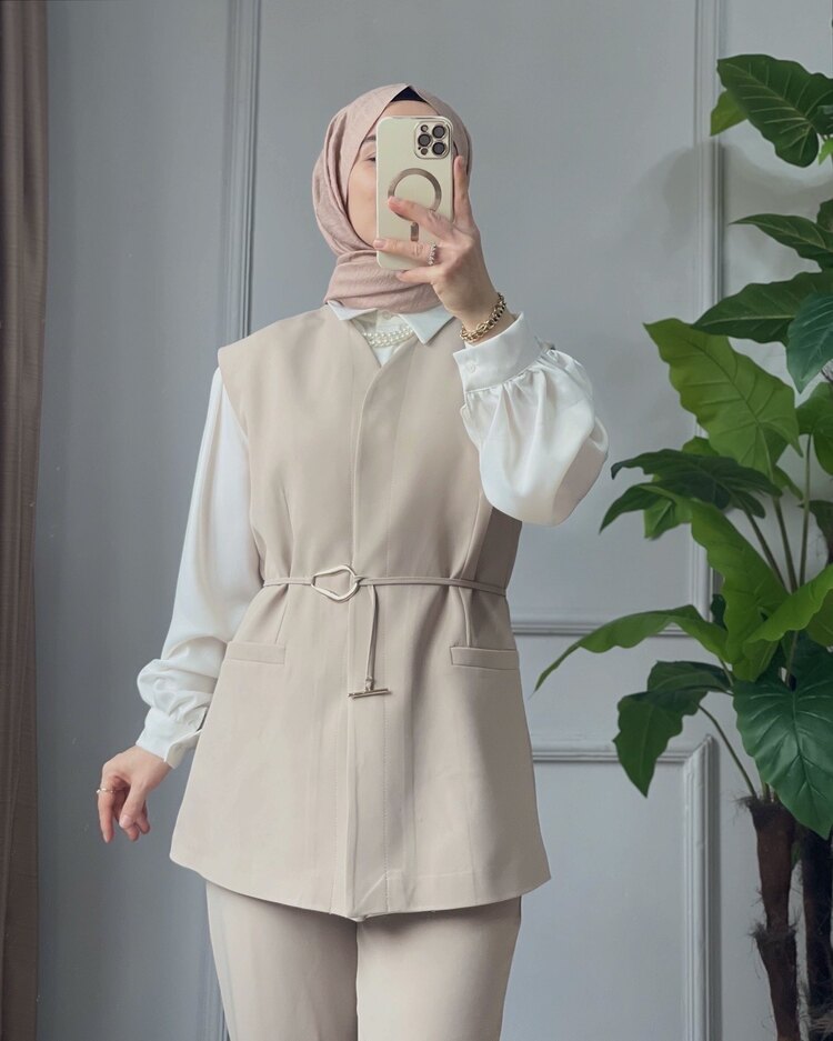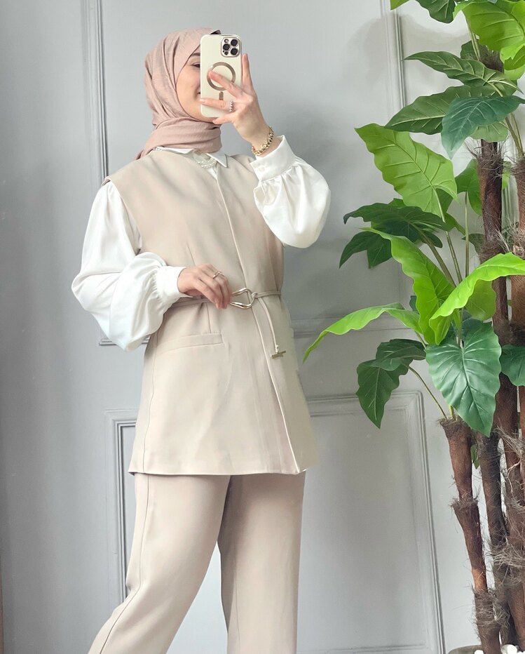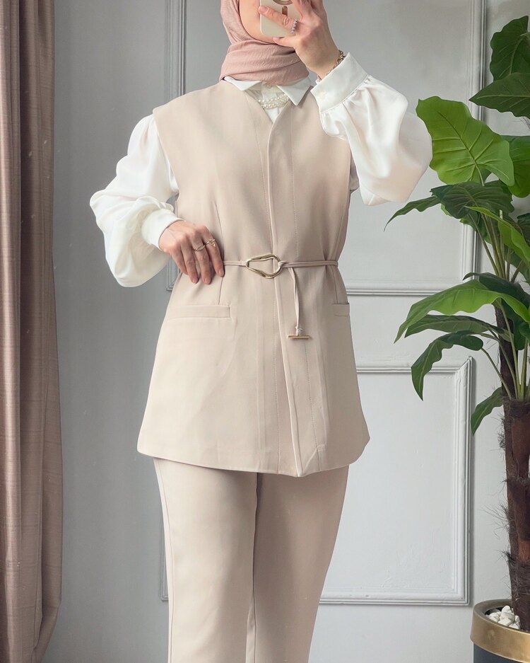 🤍 Zamansız Şıklık: Bej Yelekli İkili Takım