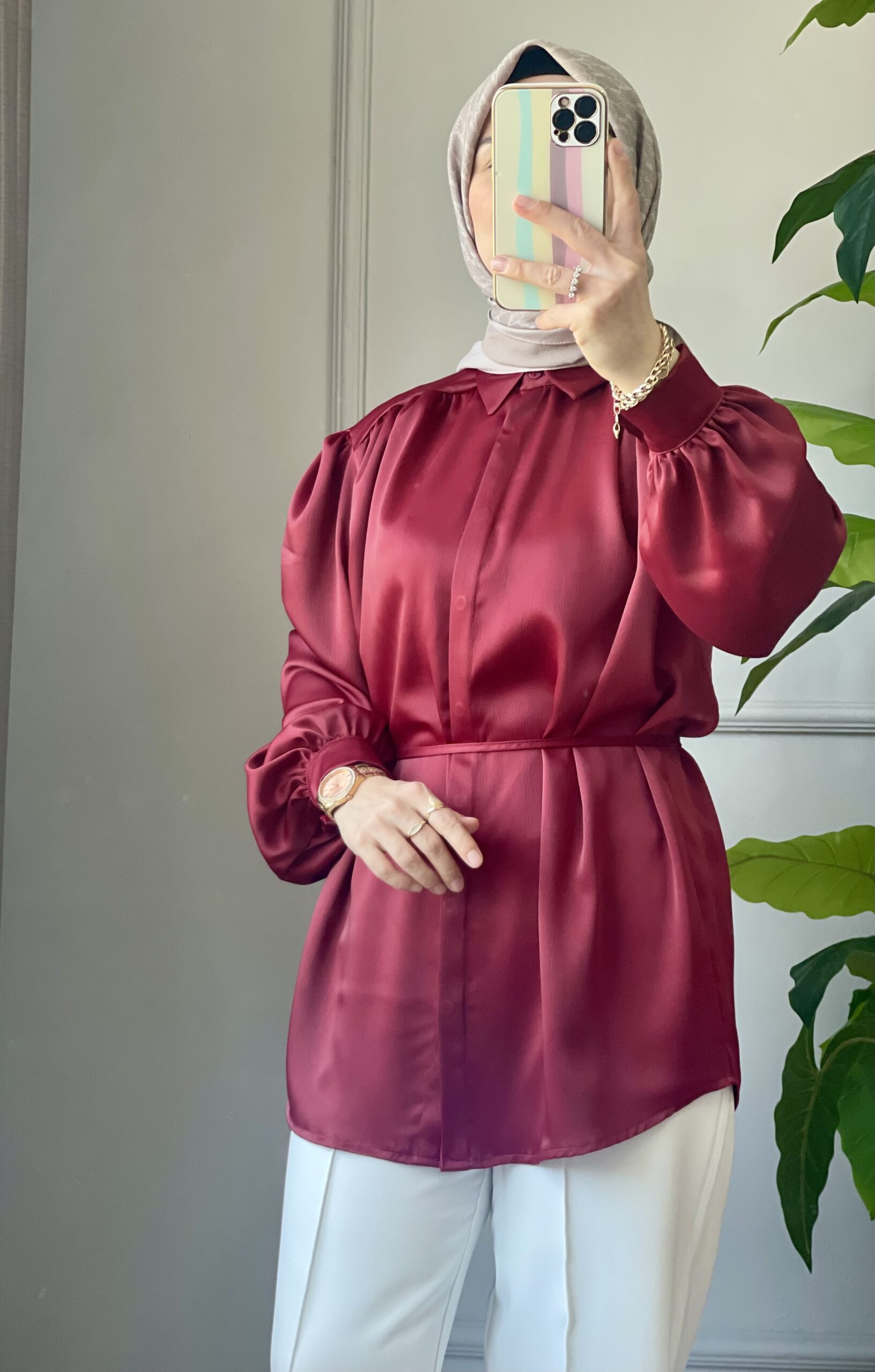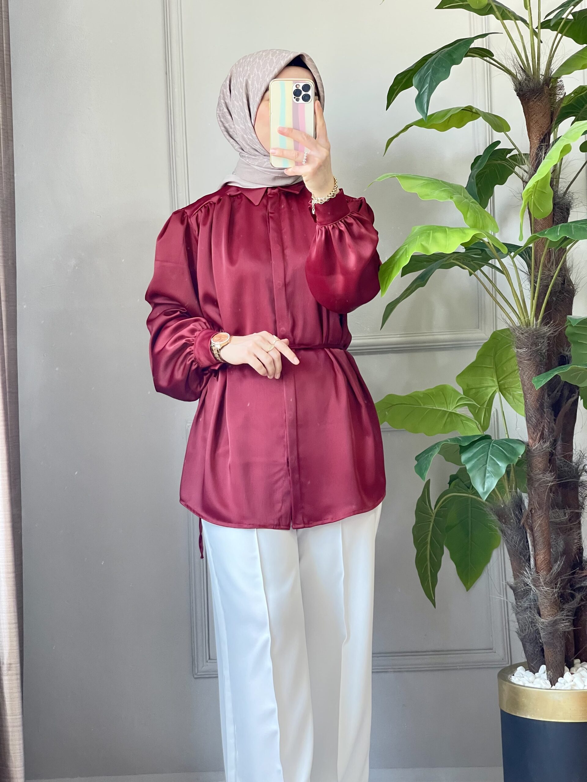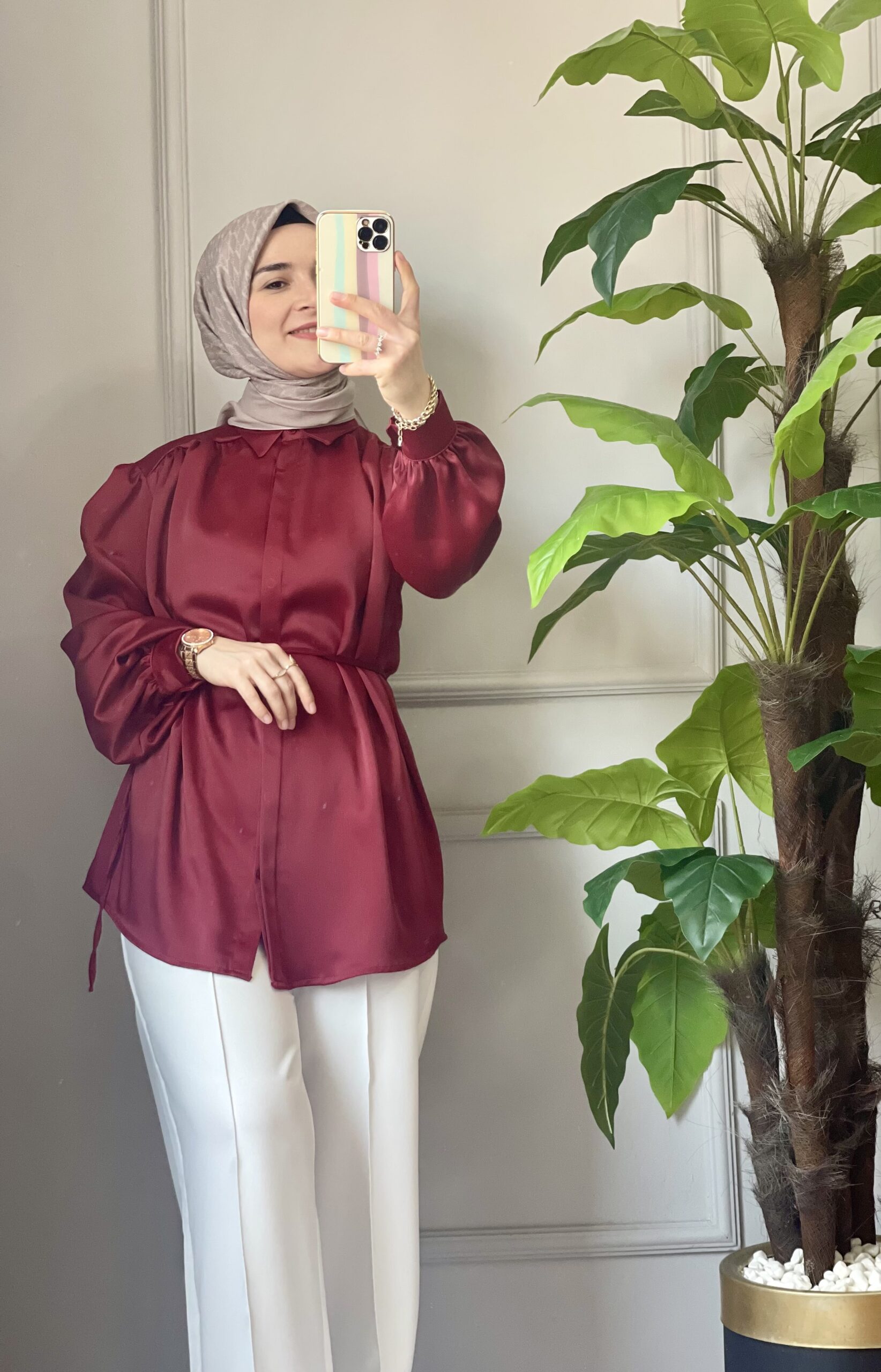 ✨ Şıklığın ve rahatlığın buluştuğu Bordo Saten Balon Kol Gömlek, modern kesimi ve parlak saten dokusuyla hem günlük hem de özel davetlerde tarzınızı yansıtır. İnce bel bağı ile zarif bir form kazanırken, balon kol detayı ile feminen bir dokunuş sunar.