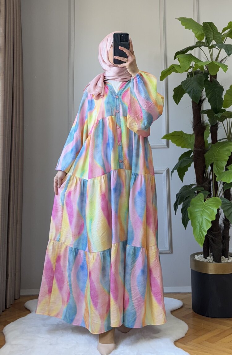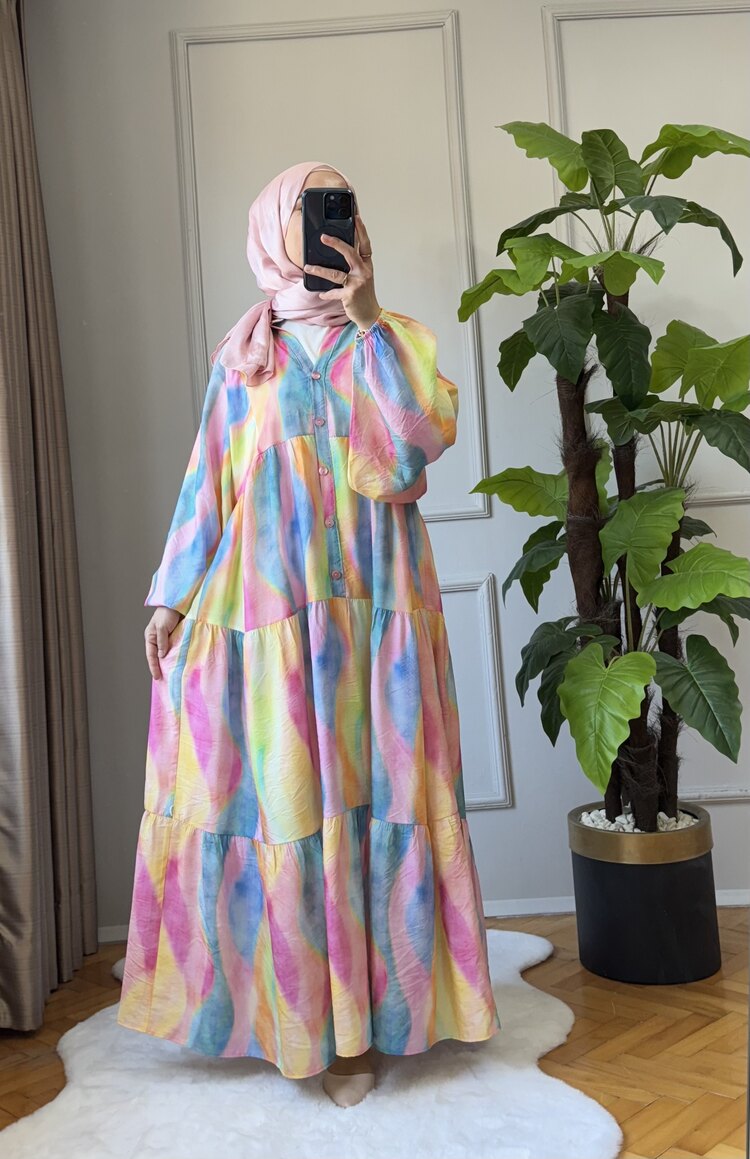 Canlı pastel tonlarının eşsiz uyumuyla tasarlanan Efuli Elbise, tansel kumaşın hafifliği ve ferahlığı ile gün boyu rahatlık sunar. Önden patlı düğme detayları ve hakim yaka kesimiyle sade ama şık bir duruş sergiler. Balon kol detayı, elbiseye feminen bir zarafet katarken; terletmeyen ve rahatsız etmeyen yapısıyla hem günlük hem özel gün kombinlerinizin favorisi olacak.