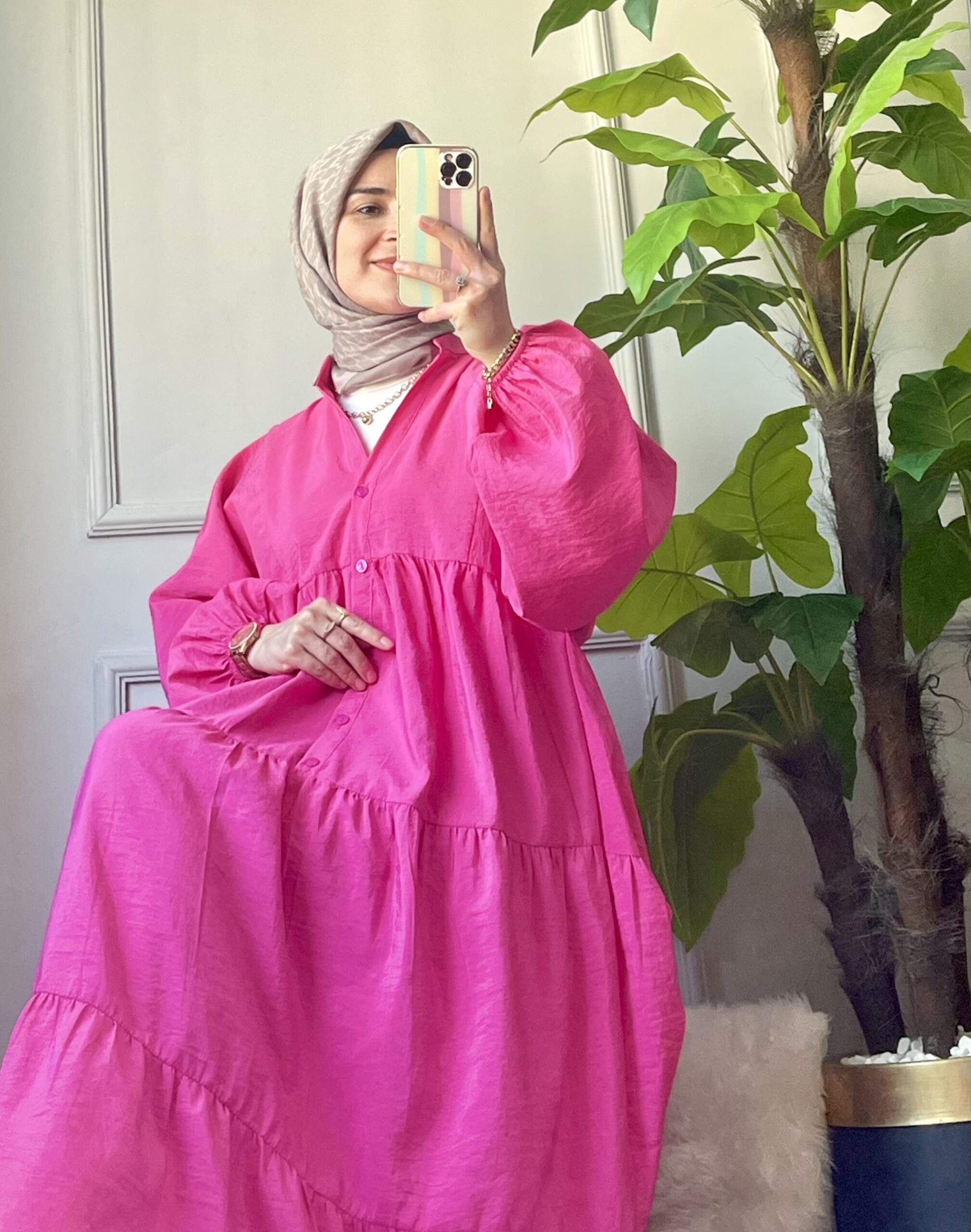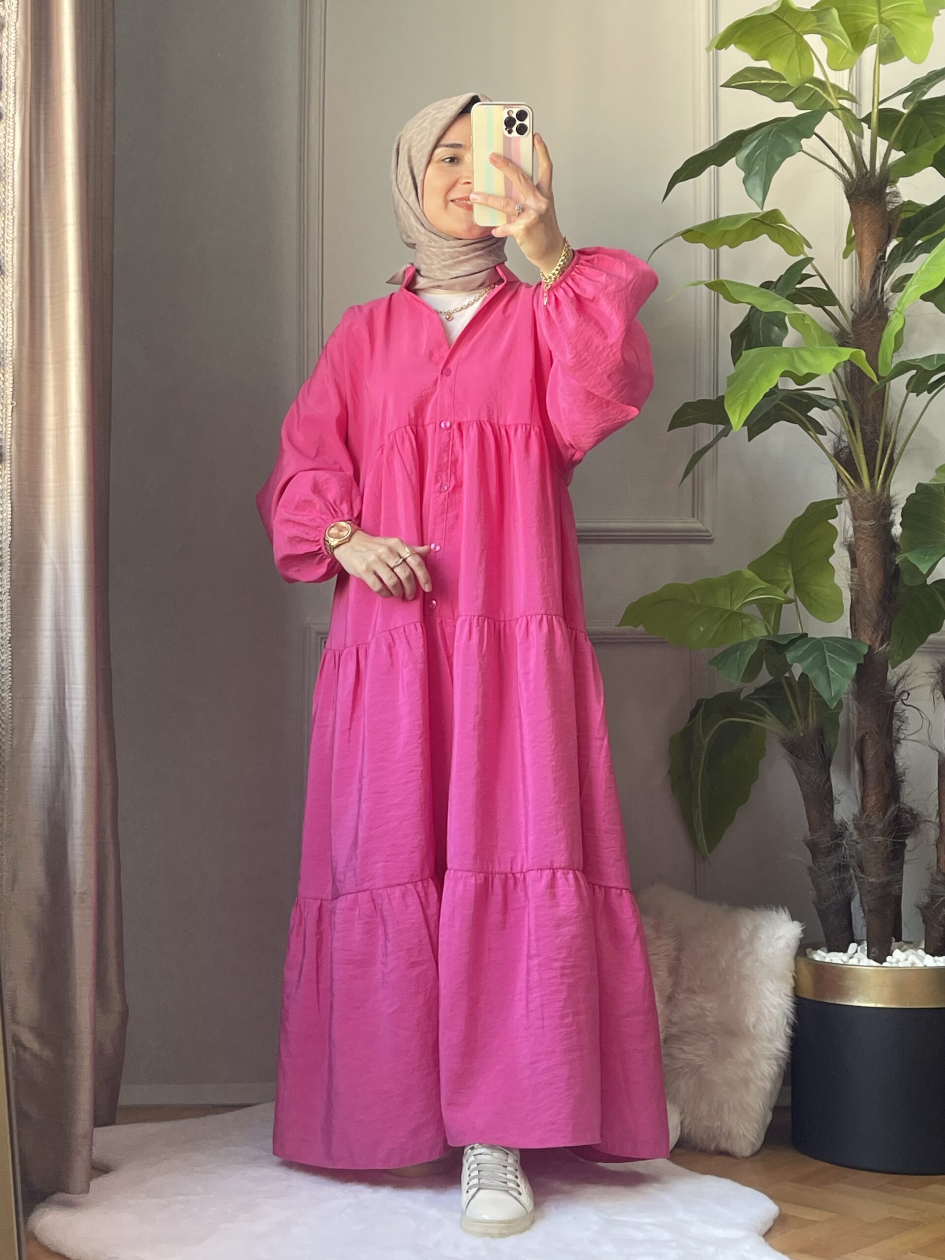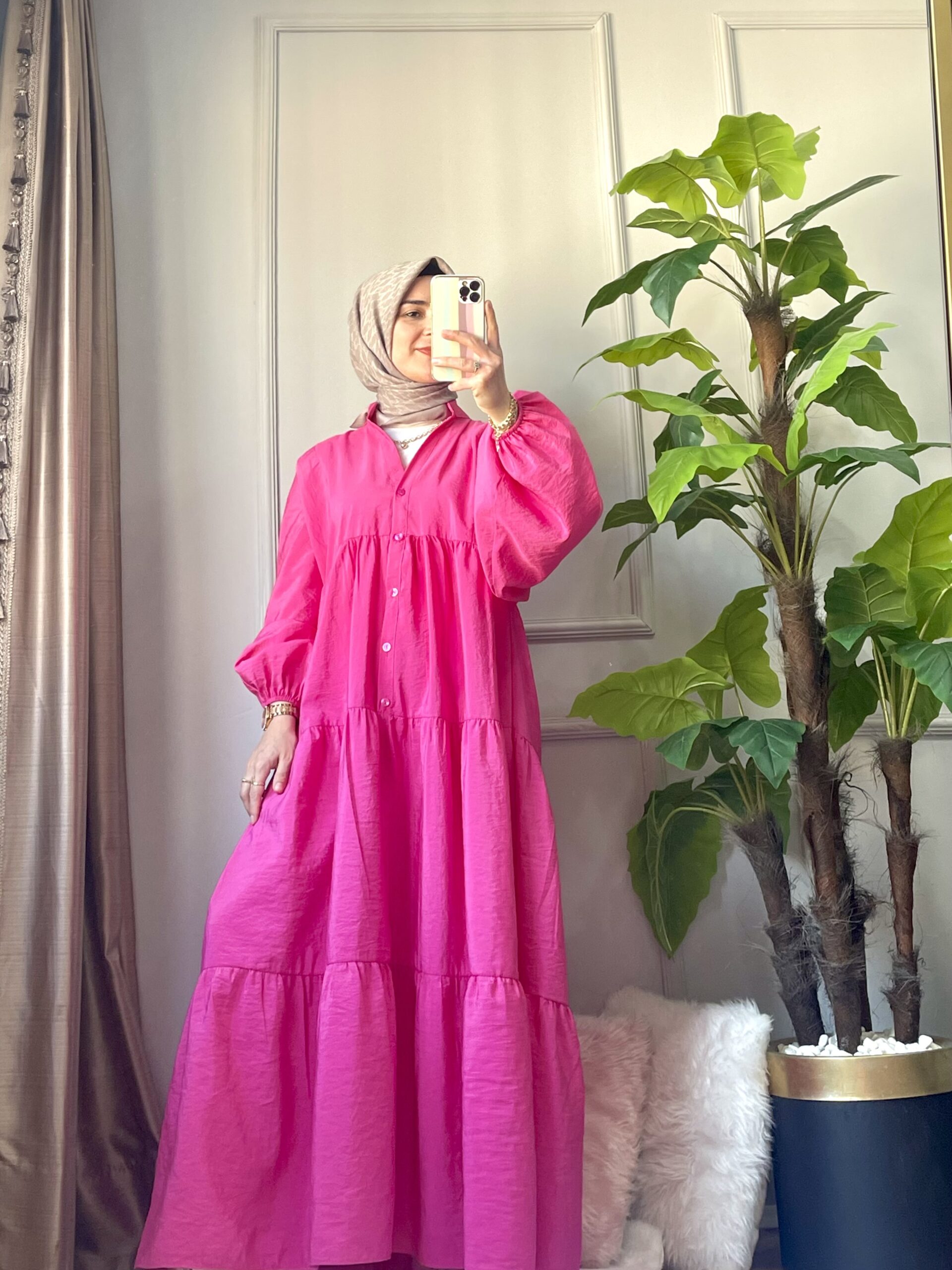 🌸 Göz alıcı fuşya tonuyla stiline canlılık kat! Yumuşak dokulu kumaşı ve dökümlü yapısıyla gün boyu konfor sunan bu elbise, zarif duruşuyla hem günlük hem özel anların yıldızı olacak. 135 cm uzunluğu ve rahat kalıbıyla her bedene uyum sağlar.