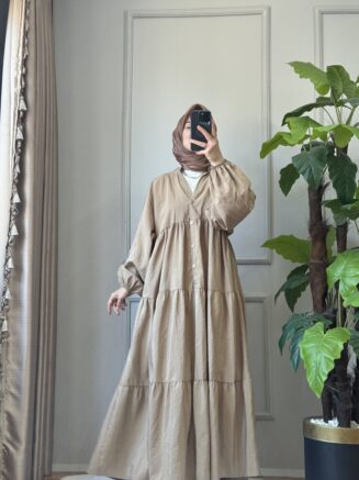 ✨ Detay: Önde düğme detaylı, kat kat etek formu