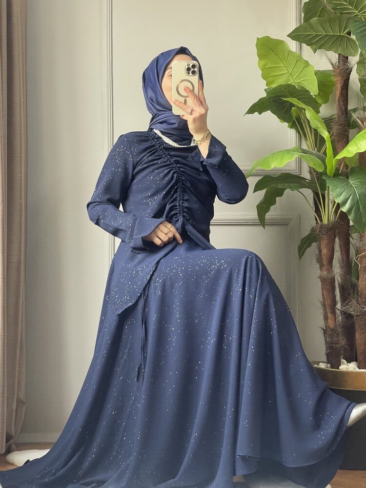 🌌 Gece Işıltısı: Lacivert Sofia Etekli Takım