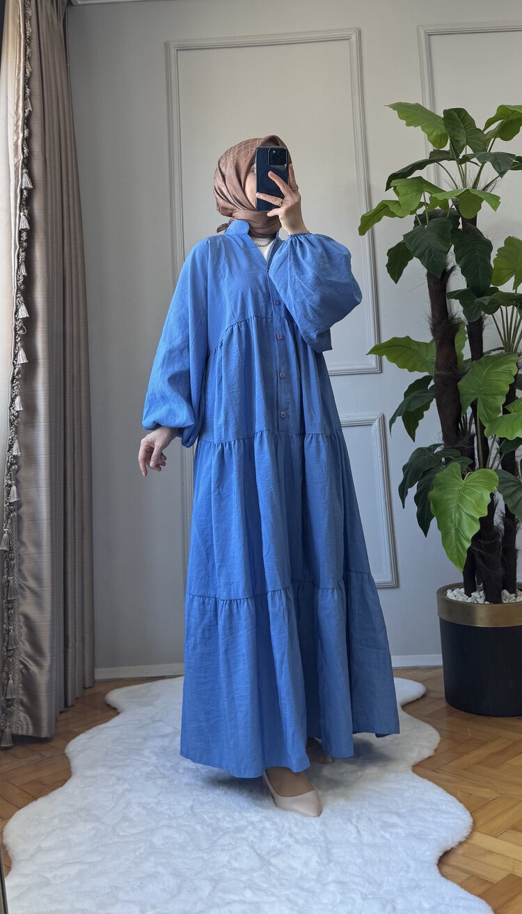 Stella Elbise, saks mavisinin çarpıcı enerjisini günlük zarafetle buluşturuyor. Hafif ve ferah tansel kumaştan üretilen bu model, önden patlı hakim yaka ve balon kol detaylarıyla modern bir silüet sunar. Terletmeyen yapısıyla yaz aylarında da rahatlıkla kullanılır. Günlük stilinize renk katmak ya da özel bir davette fark yaratmak için ideal bir parça.