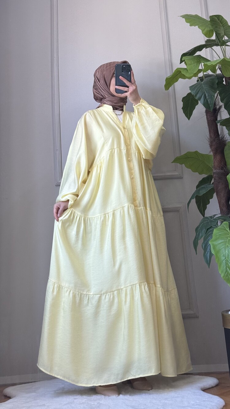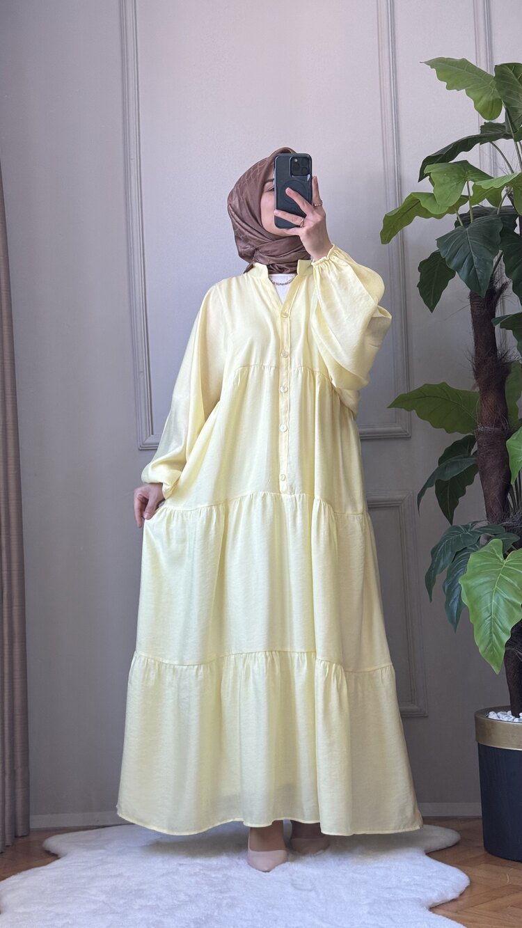 Tansel kumaşın dökümlü ve nefes alabilen dokusuyla tasarlanan Stella Elbise, soft sarı rengiyle enerjik ve ferah bir stil sunuyor. Hakim yaka ve önden patlı düğme detayıyla klasik duruşunu korurken, balon kol kesimiyle zamansız bir şıklık yaratıyor. Hafif ve terletmeyen yapısıyla yaz mevsimi için ideal. Günlük kombinlerde de özel günlerde de sade zarafeti arayanlar için birebir!